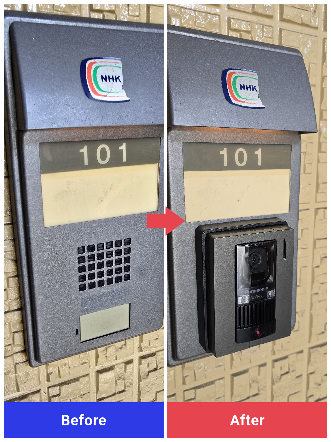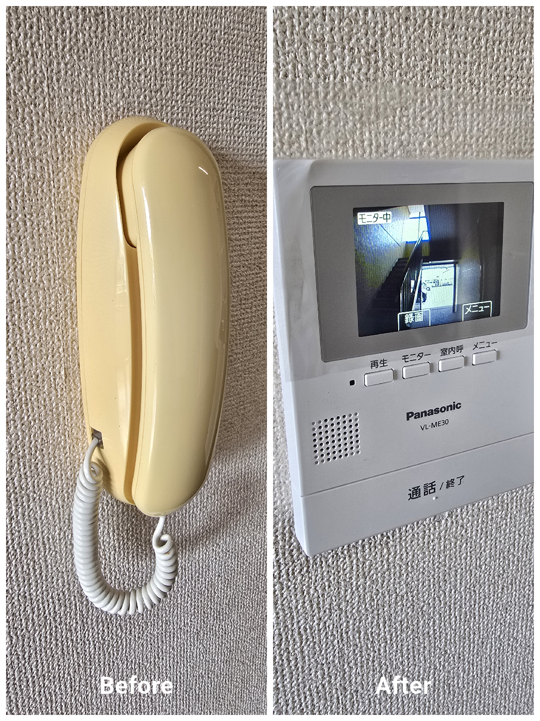 チャイムのみのドアホン交換です…こちらも今やマストのモニター付きドアホンに交換です!