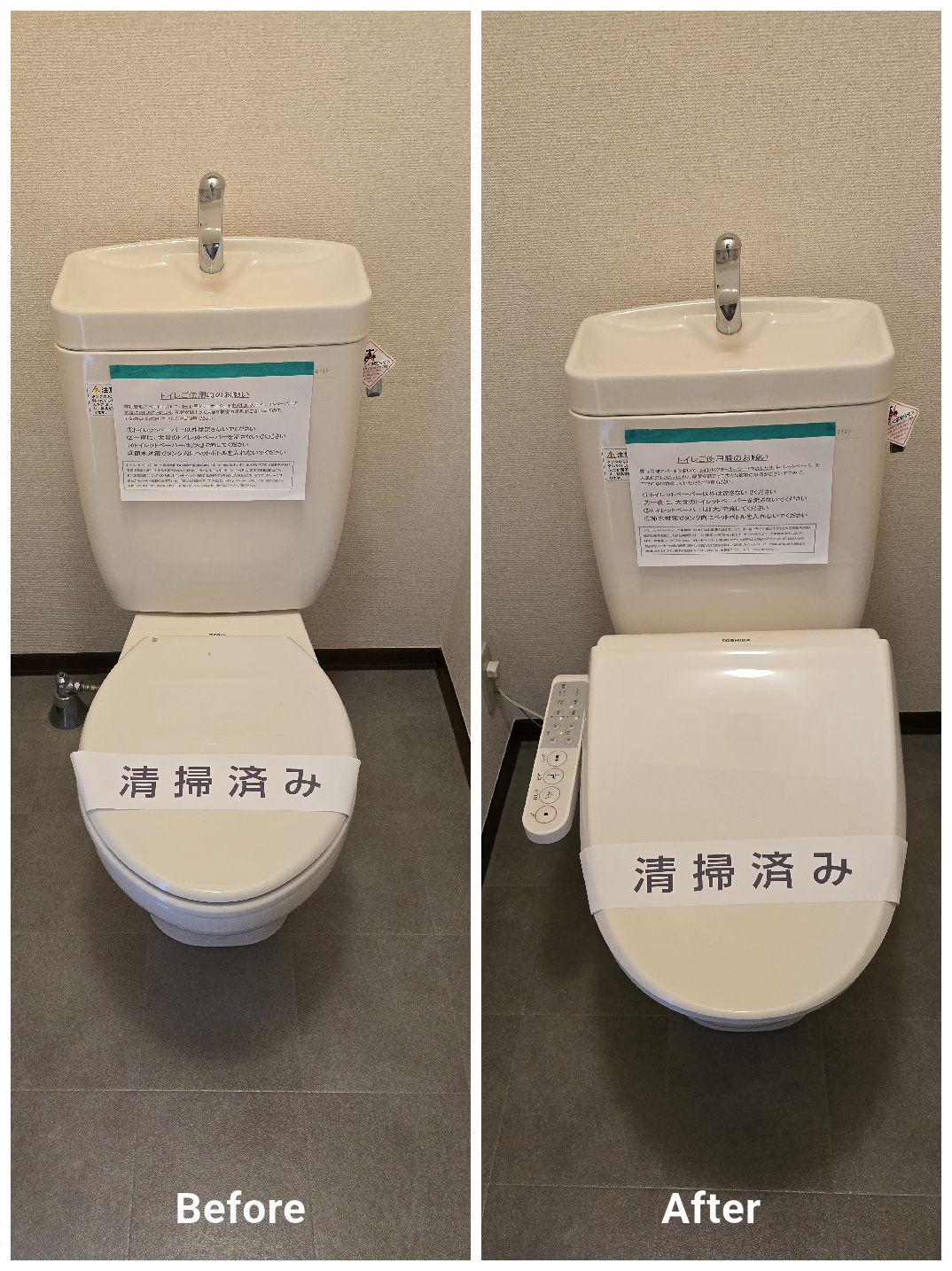 次はトイレ…普通便座から温水洗浄便座への交換です!