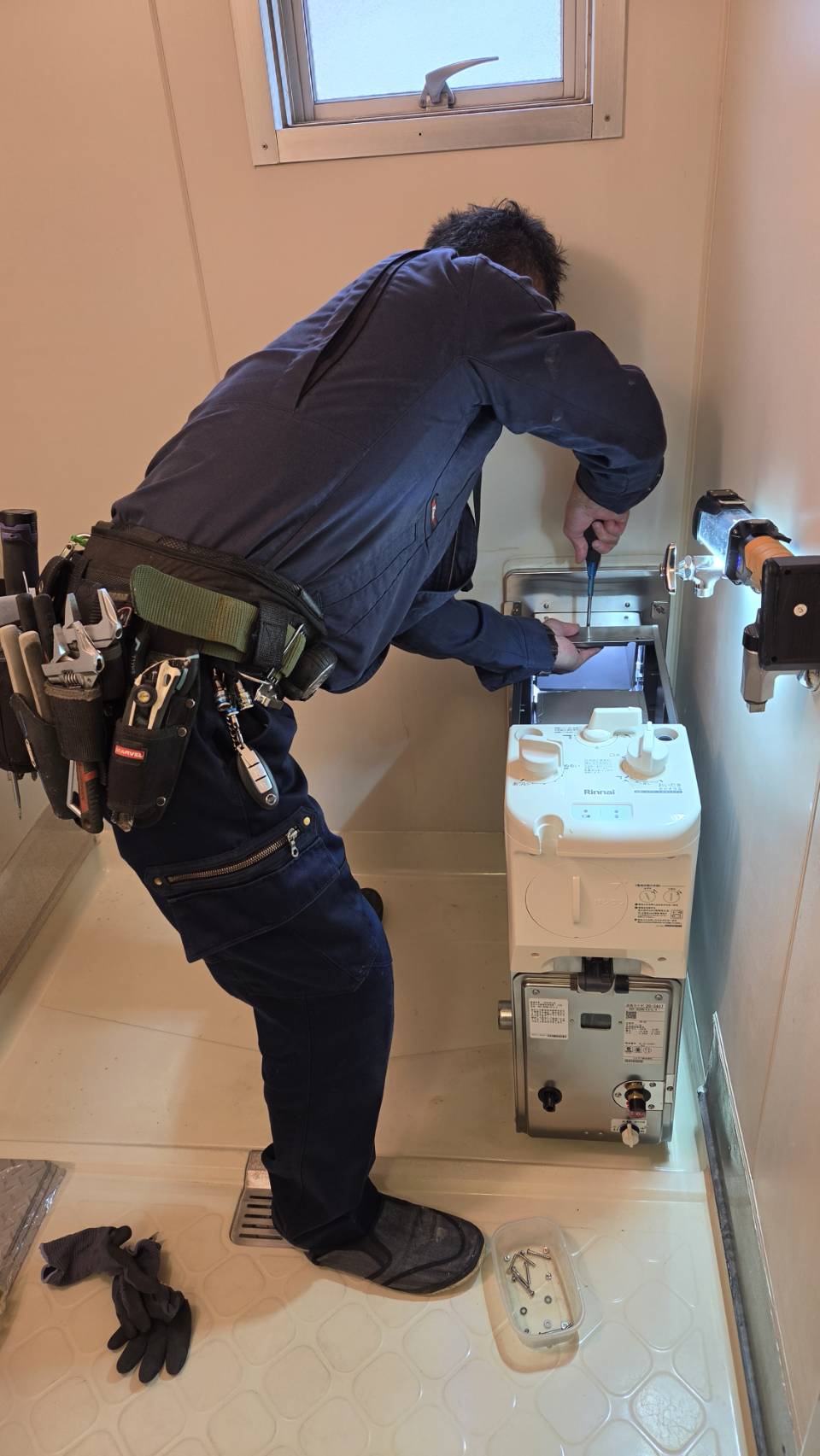 次はキッチン湯沸し器の新規設置工事となります。
